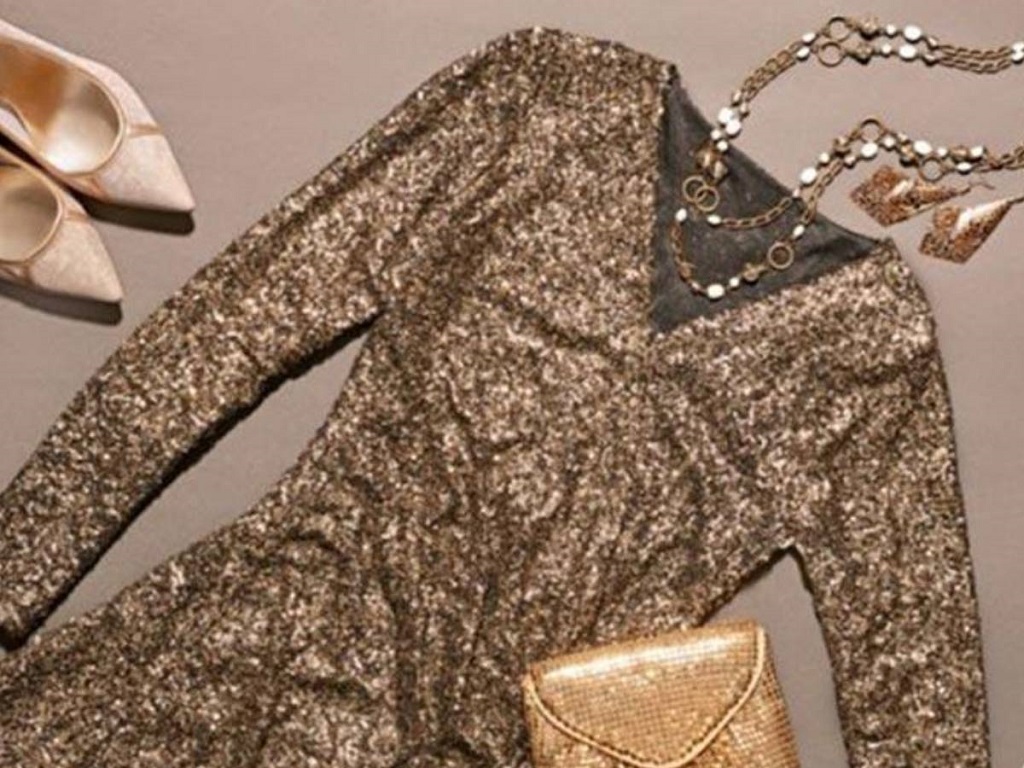 پیراهن مجلسی پولک‌کاری شده.