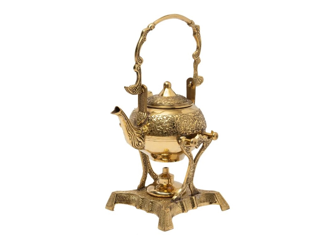 قوری برنجی هندی با پایه وارمر آدرینا طلایی
