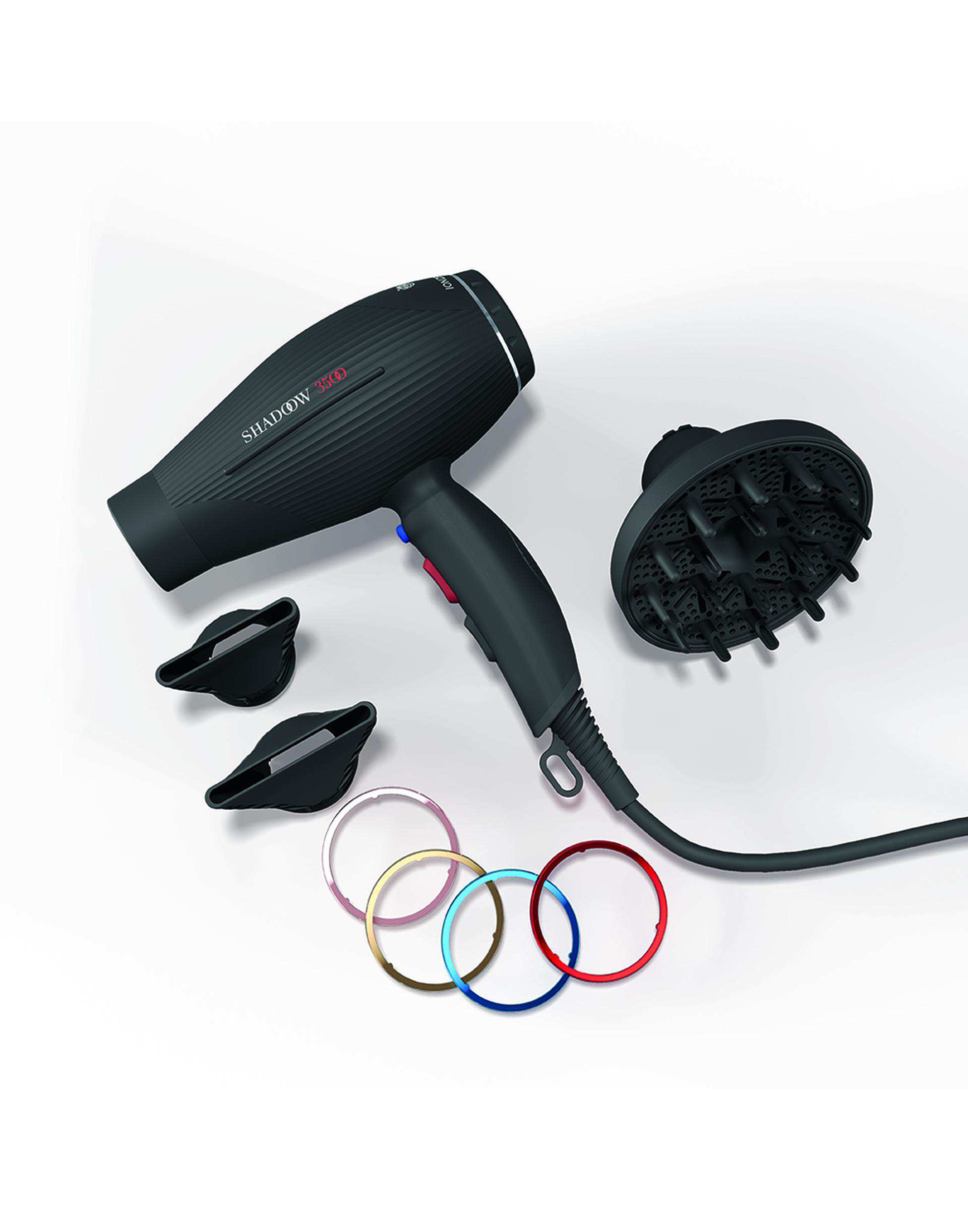 • سشوار مدل SHADOOW، دو عدد نازل قابل تعویض، یک عدد دیفیوزر، 4 عدد حلقه رنگی